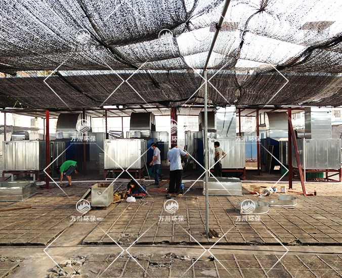 自動噴涂線包括了噴槍及控制裝置,除塵裝置,水簾柜,IR爐,無塵供風(fēng)裝置以及輸送裝置等。自動噴涂線空間大,產(chǎn)生的廢氣量大,含漆粉、三苯污染物。萬川環(huán)保生產(chǎn)的臥式噴淋塔,一次性處理風(fēng)量大,停留時間長,除塵效率高。